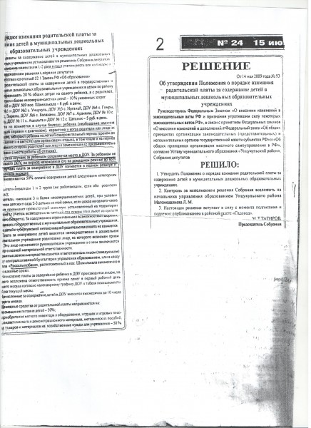 Документ об установлении размера платы, взимаемой с родителей (законных представителей)